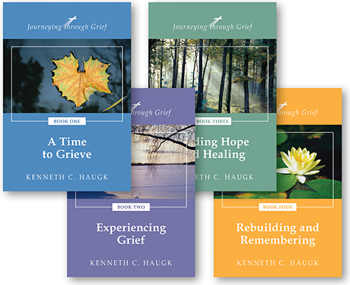 Journeying through Grief is a set of four short, easy-to-read booklets that offer words of comfort and hope to those grieving the loss of a loved one. Individuals and organizations send each of the Journeying through Grief books to grieving people at specific, crucial times during that first year after a loved one dies. Each book focuses on what the person is likely to be experiencing at that time and provides care, assurance, encouragement, and hope. Although the books are designed to help those in the first year of grief, people whose loss was more than a year ago have also found them extremely helpful.