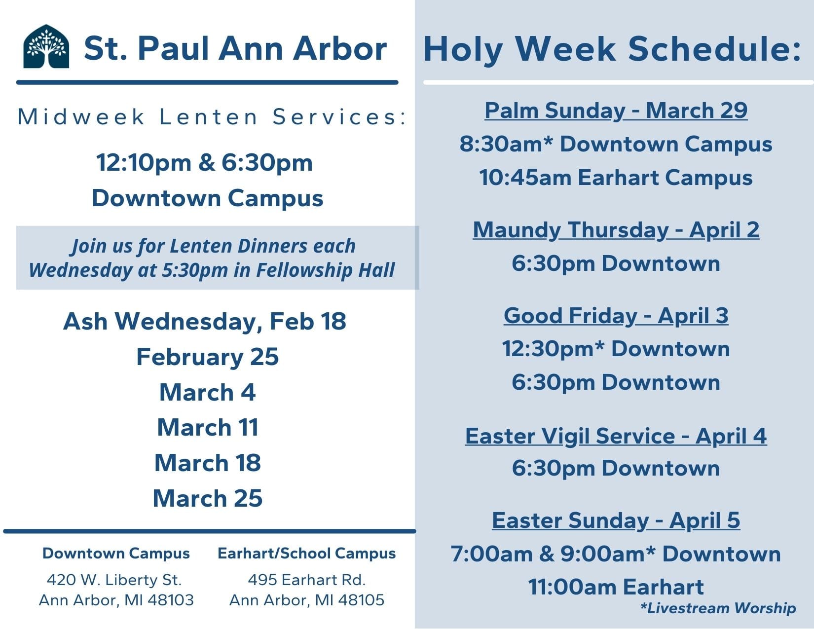 Holy Week Worship Schedule: